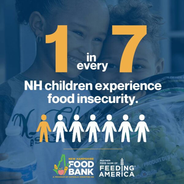 Hunger impacts approximately 1 in 9 NH residents statewide, including 1 in 7 children.